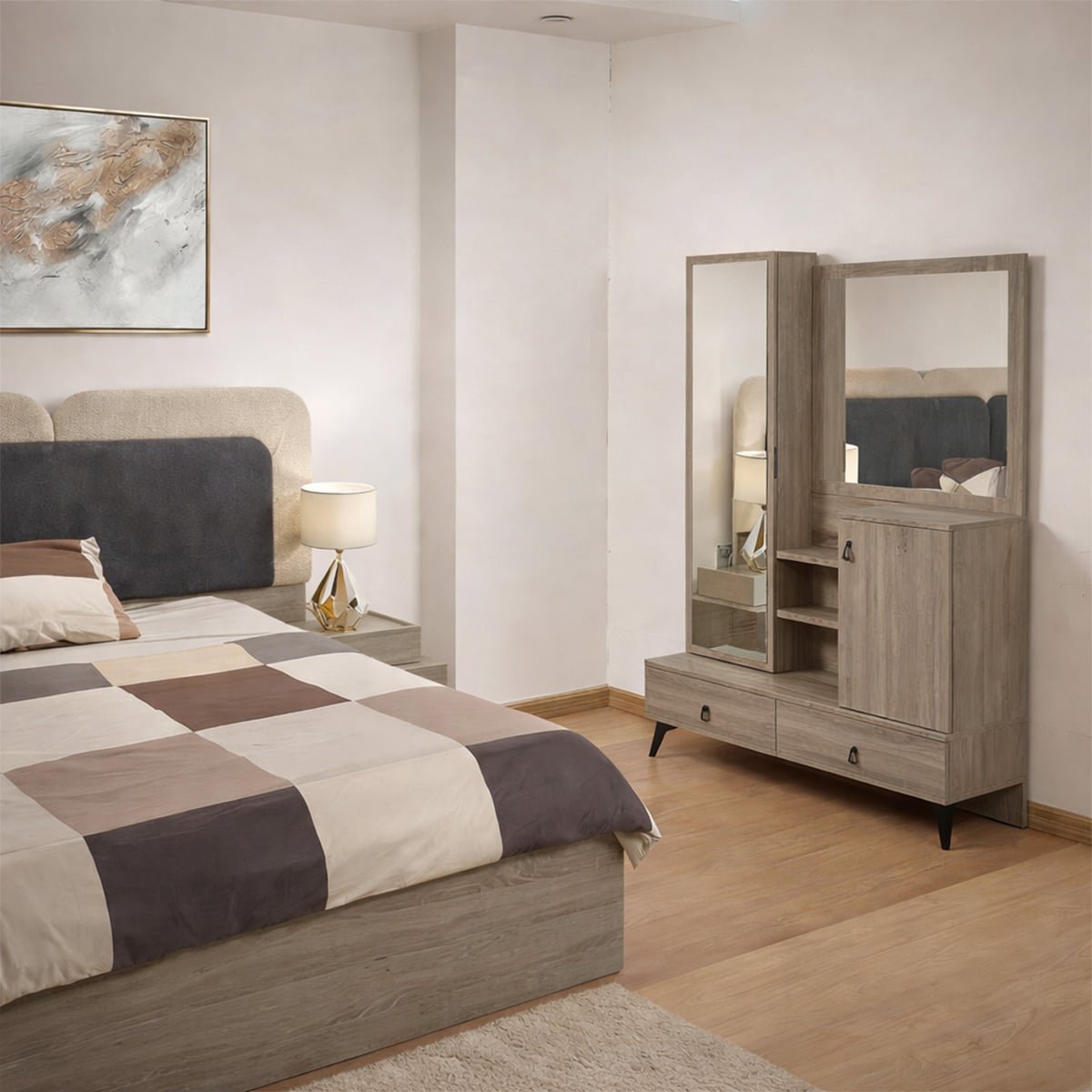 - محتوايات الغرفة: سرير , ٢كمود، تسريحة ، دولاب .